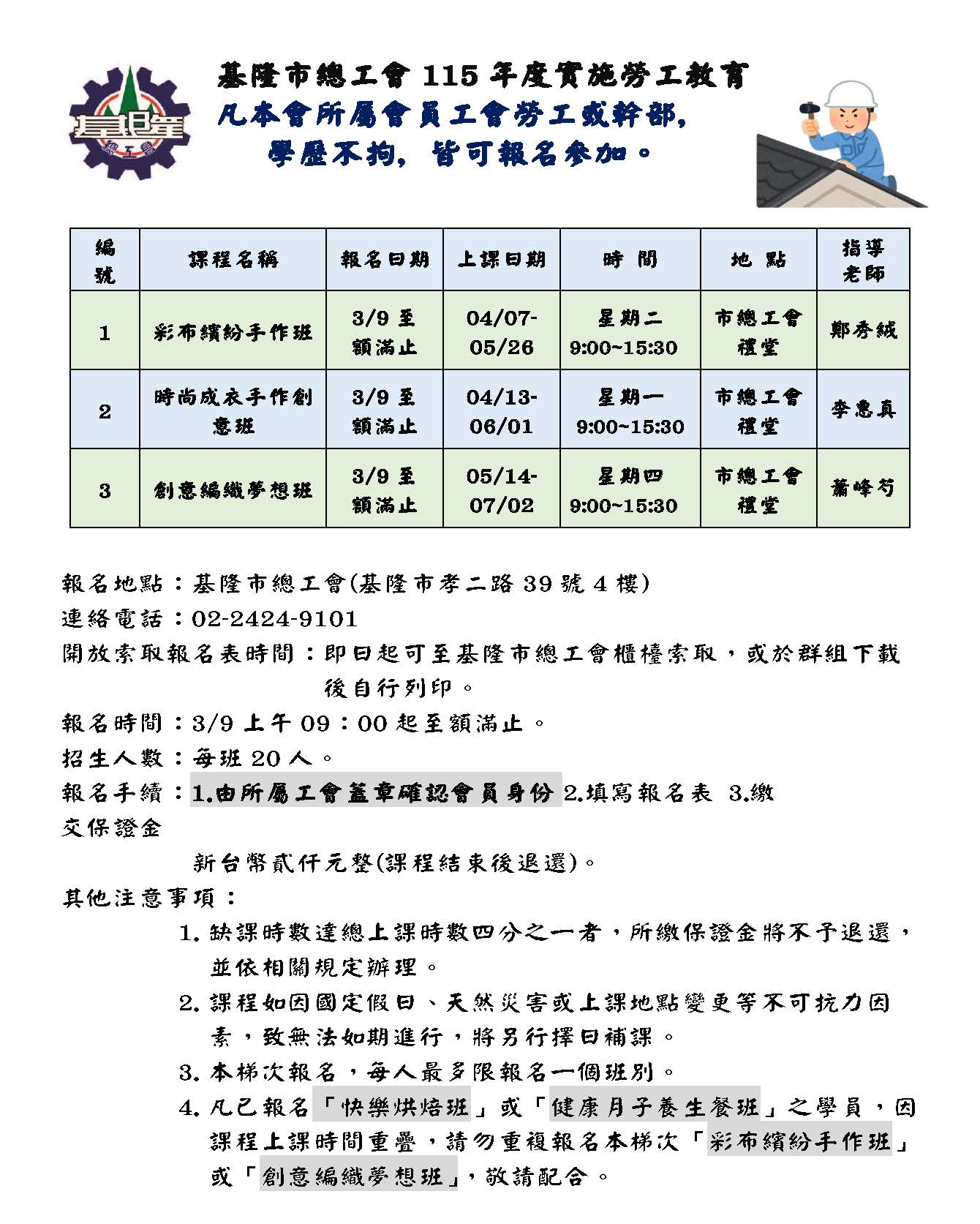 115年度勞工學苑課程第二梯次